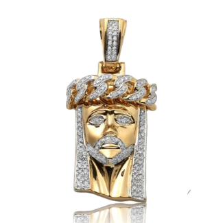 14K Gold | 0.50 CT | Diamond Miami Cuban Jesus Pendant