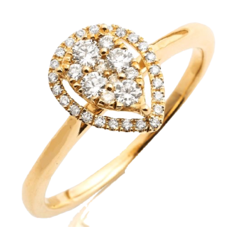 14K Gold | 0.35 CT | Diamond Pear Halo Cluster Ring