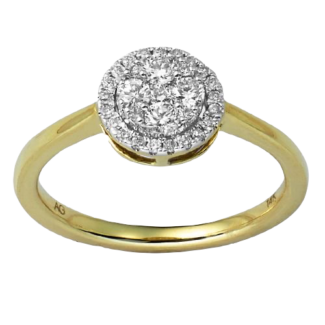 14K Gold | 0.40 CT |Diamond Round Cluster Round Halo Ring