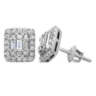 14K Gold | 0.77 CT | Diamond Round Small Baguette Earrings