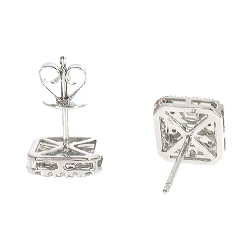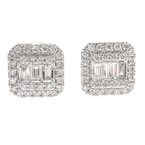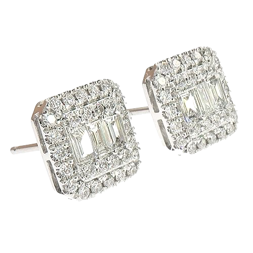 18K Gold 0.85 CT Diamond Square Baguette Earrings