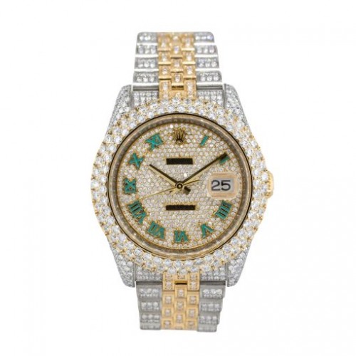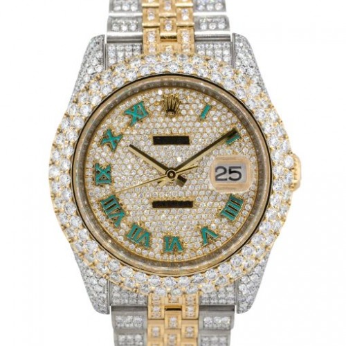 36mm Rolex Datejust Two Tone Diamond Watch Green Roman