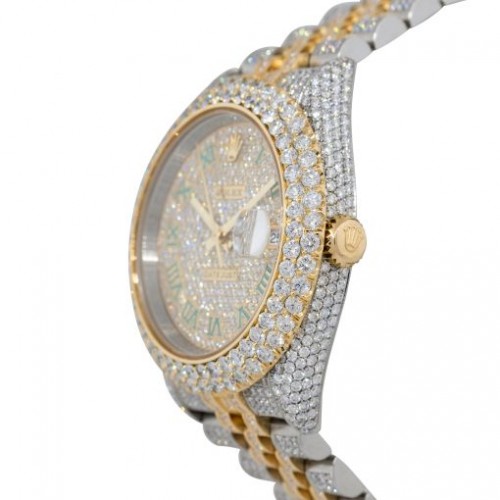 36mm | Rolex Datejust Two Tone Diamond Watch Green Roman