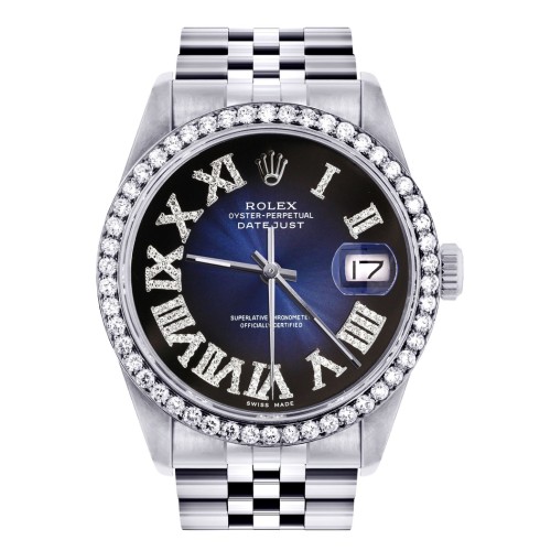 36mm Rolex Diamond Watch Datejust Navy Dial