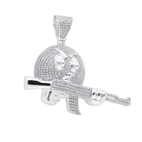 10K Gold 1.5 CT Diamond Angry Emoji with AK47 Machine Gun Pendant