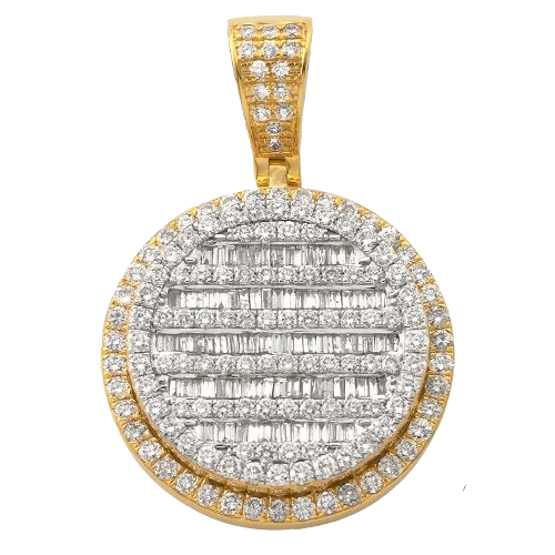 10K Gold | 3.05 CT | Diamond Baguette Circle 3-D Pendant