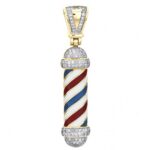 10K Gold | 0.58 CT | Diamond Barber Shop Pole Pendant