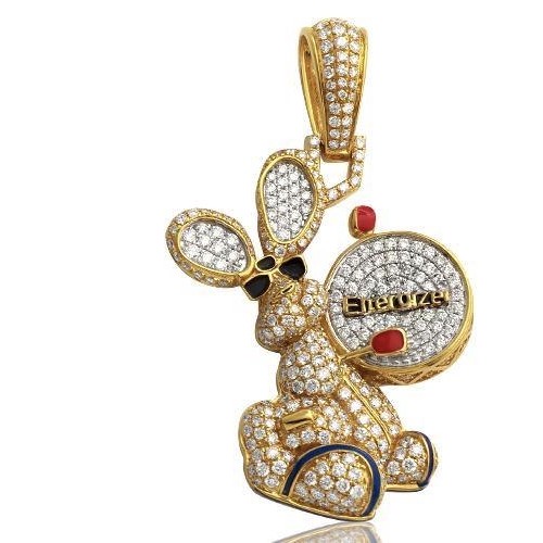 14K Gold 2.50 CT Diamond Battery Rabbit Pendant