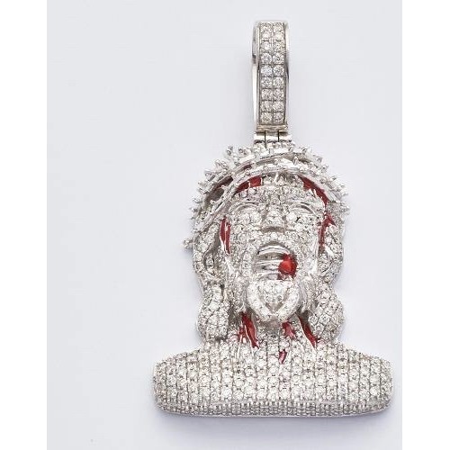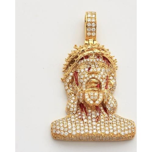 14K Gold 2 CT Diamond Bleeding Jesus Head Pendant.