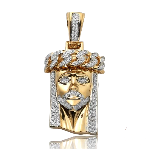 14K Gold 0.50 CT Diamond Miami Cuban Jesus Pendant – Solid Back